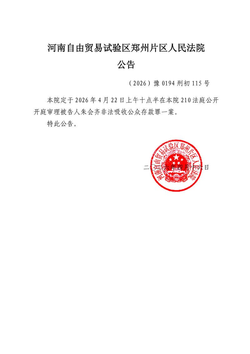 河南自由贸易试验区郑州片区人民法院公告